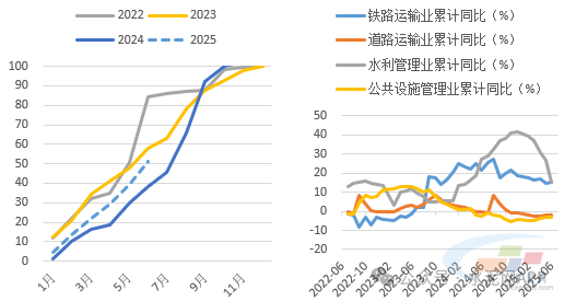基建方面,我們判斷下半年增速將保持平穩(wěn),基建整體對(duì)水泥需求支撐仍然不足。盡管上半年專項(xiàng)債發(fā)行進(jìn)度相對(duì)較快,占全年計(jì)劃51.2%,同時(shí)政府要求下半年發(fā)行繼續(xù)提速,但在化債政策影響下,水泥需求關(guān)系密切的交通類和市政基建投資可能延續(xù)低迷態(tài)勢(shì),預(yù)計(jì)下半年基建整體對(duì)水泥需求支撐仍然不足。