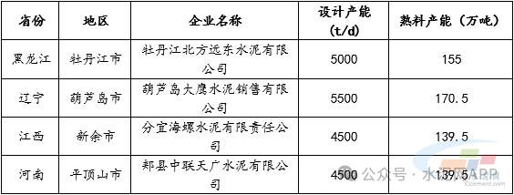 表:2025年下半年計(jì)劃新投熟料生產(chǎn)線信息