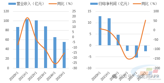 圖1、2:2025年上半年山水水泥營收、利潤走勢