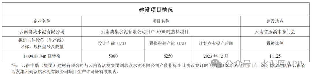 云南典集水泥有限公司申請撤銷“云南典集水泥有限公司日產(chǎn)5000噸熟料建設(shè)項目產(chǎn)能置換方案”。按照原計劃,該企業(yè)擬建一條5000t/d熟料生產(chǎn)線,退出產(chǎn)能來自云南中瑞(集團)建材有限公司2條2000t/d、元江縣永發(fā)水泥有限公司1000t/d、祥云縣建材(集團)有限責任公司1000t/d、云南省活發(fā)集團劉總旗水泥有限公司2500t/d(用于本項目250t/d)共計5條生產(chǎn)線。