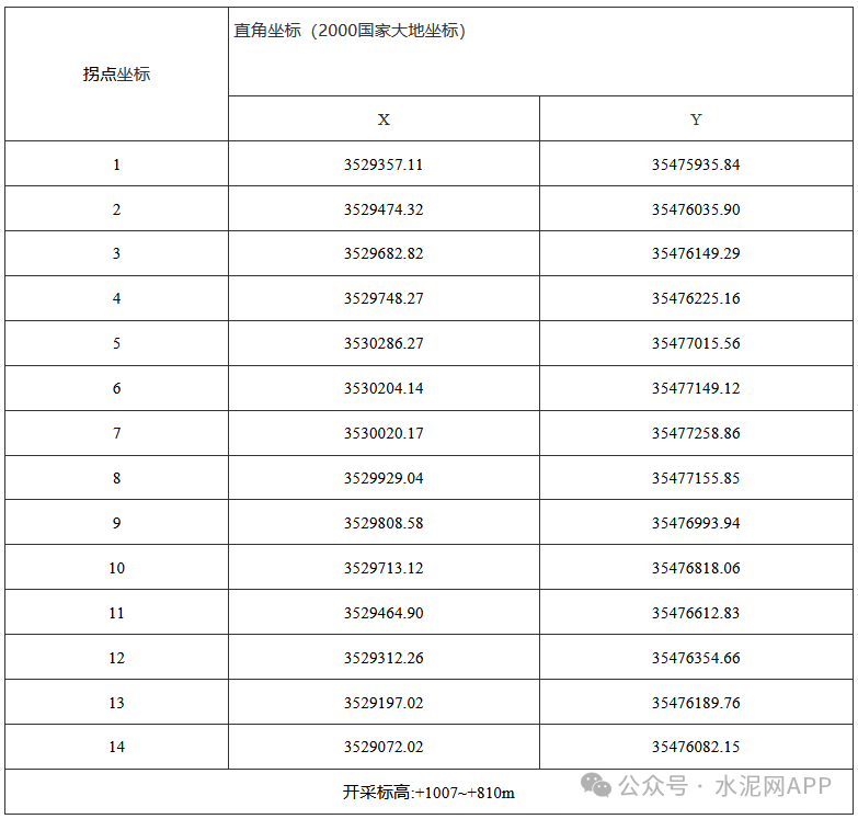 采礦權(quán)范圍:面積0.569平方千米,拐點(diǎn)坐標(biāo)如下(2000國(guó)家大地坐標(biāo)):