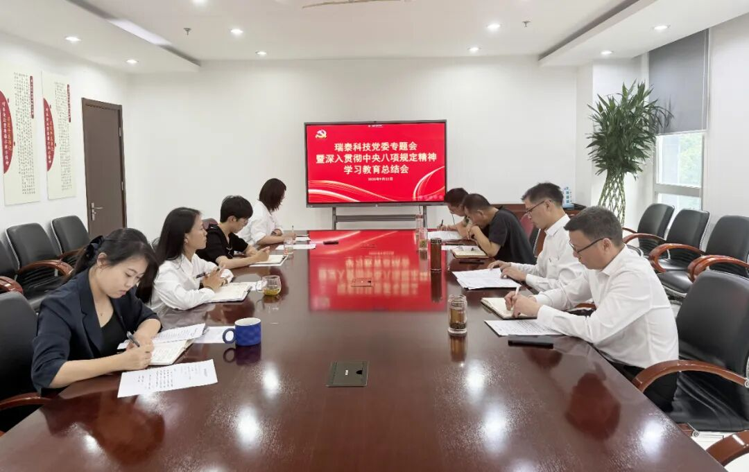 9月22日,瑞泰科技召開黨委專題會暨深入貫徹中央八項(xiàng)規(guī)定精神學(xué)習(xí)教育總結(jié)會。瑞泰科技黨委書記、董事長陳榮建主持會議并講話,公司黨委委員、紀(jì)委書記童若思報(bào)告公司深入貫徹中央八項(xiàng)規(guī)定精神學(xué)習(xí)教育總體情況,公司領(lǐng)導(dǎo)班子成員結(jié)合分管領(lǐng)域作交流發(fā)言。