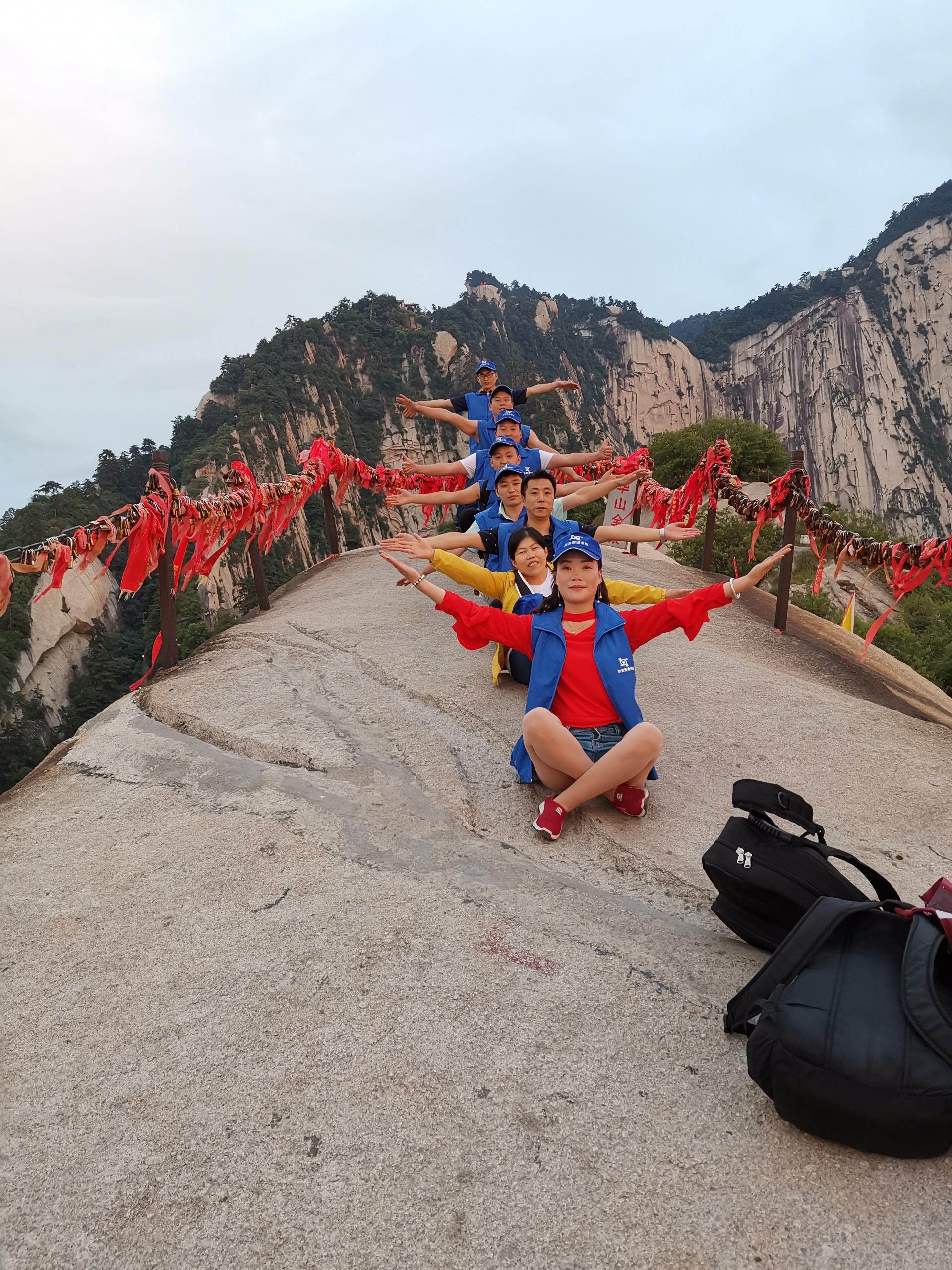 2019年6月15日早上九點半,商洛菱通電梯工程有限公司,一行九人從商州整裝出發(fā),盤山越嶺自駕行駛了兩個多小時的路程,終于抵達華山腳下。稍作休息在山下用過午餐,已經(jīng)是下午兩點多了,我們備足食物和水,準備登山之旅。這天天氣還算不錯,沒有艷陽高照,也沒有陰云密布,給人一種神清氣爽的登山條件。一路上同志們互幫互助堅持不懈,經(jīng)歷了千尺幢、百尺峽幾個比較險峻的路段,克服了一切艱難險阻。用了五個多小時終于到達了華山北峰,我們在北峰稍作停留拍照留念,之后繼續(xù)向中峰和東峰前進,雖然中途有下過雨,但是老天也算沒辜負我們的期望。沒影響我們看當天的日落。我們最終在晚上九點多抵達東峰,大家已是筋疲力盡汗流浹背了,領(lǐng)導(dǎo)決定在東峰簡單用餐后休息一晚,第二天去登南峰和西峰,晚上大家睡得可香了。